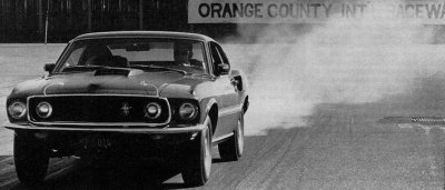 Both Cougar and Mustang had automatics, but with console-mounted shifters, going through the gears was effortless and quite precise. The Mustang shifted instantly but there seemed to be a lag in upshifting the Merc. We noticed that most on a trip through mountainous country on a winding road. Acceleration after upshifting also seemed to be slow on our trip. But it didn't seem to be a problem at Orange County Raceway. The performance figures prove that without a doubt.