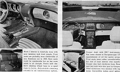 Probably the most luxurious overall, the Cougar XR-7 sports an instrument panel that comes closest to being an honest-to-goodness GT car in the European tradition. It's fully instrumented with well-placed, easy-to-read gauges. Both heater and radio controls are centrally located within easy reach of the passenger. The Cougar convertible is new to the line this year, it's simple and easy-to-operate and with the top up, wind noise is minimal. We did notice quite a few rattles and a loose feeling developing in the body, but a certain amount of that must be expected if you want to enjoy the pleasures of a convertible.