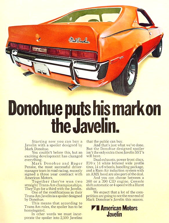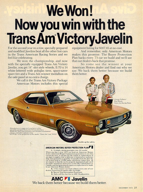 Javelin wins the first race of the 1971 SCCA Trans-Am Racing Series.