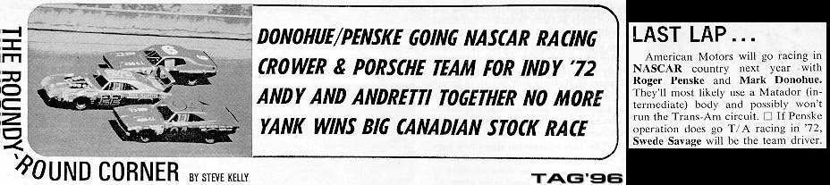 Small blurb about Donohue/Penske leaving TransAm for NASCAR in 1972 (1 pic).