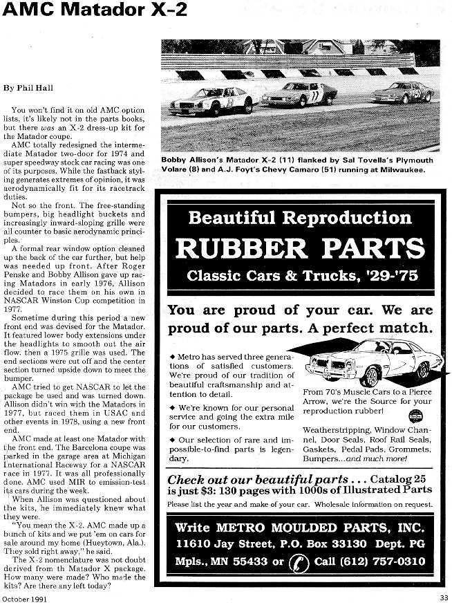 October 1991 Old Cars Price Guide 'AMC Matador X-2', Page 1 of 1