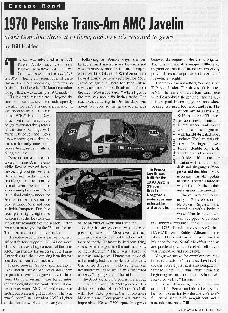 April 17, 1995 AutoWeek, '1970 Penske Trans-Am Javelin'