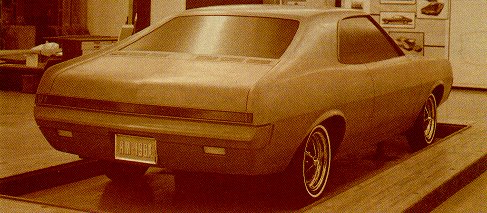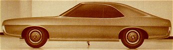 A 1966 clay model (left) strongly hinted at the Javelin's eventual roofline and rear side sculpturing.