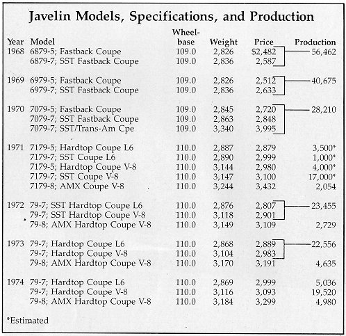two-seater AMX, and the handsome Javelin.