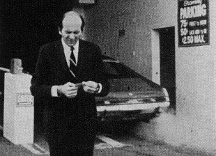"For instance the TV commercial where the fellow pulls his Javelin up to the parking garage and turns it over to the attendant who jumps in, sticks it in gear and then floors the throttle. As the Javelin - tires smoking - disappears up the ramp into the garage, the camera focuses on the owner's cringing face. There are only two lines in this commercial. 'We never had the reputation for building hot sporty cars. Now we have.' At one time or another, almost every car owner watching that commercial has winced as he watched a parking attendant abuse his car. I think you will agree that this type of commercial is far more effective than had we blasted on the screen with a statement. 'Folks, the Javelin is hot and ...'