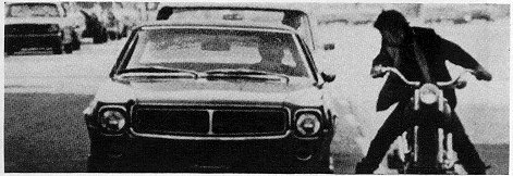 "And remember earlier in that commercial where the guy on the motorcycle at the stoplight asks the Javelin owner if he wants to drag? The Javelin owner is a timid soul so he begs off saying he has a bowl of goldfish on the seat and has to take it easy. I drive a Javelin and you would be surprised how many people pull up alongside me at a stoplight and ask if I want to drag. And other Javelin owners honk their horns and wave when they pass. Can you imagine American Motors owners doing that a few years ago? In all of our commercials, we try to make the car the hero of the situation.
